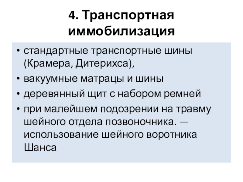 Наложить транспортные шины.