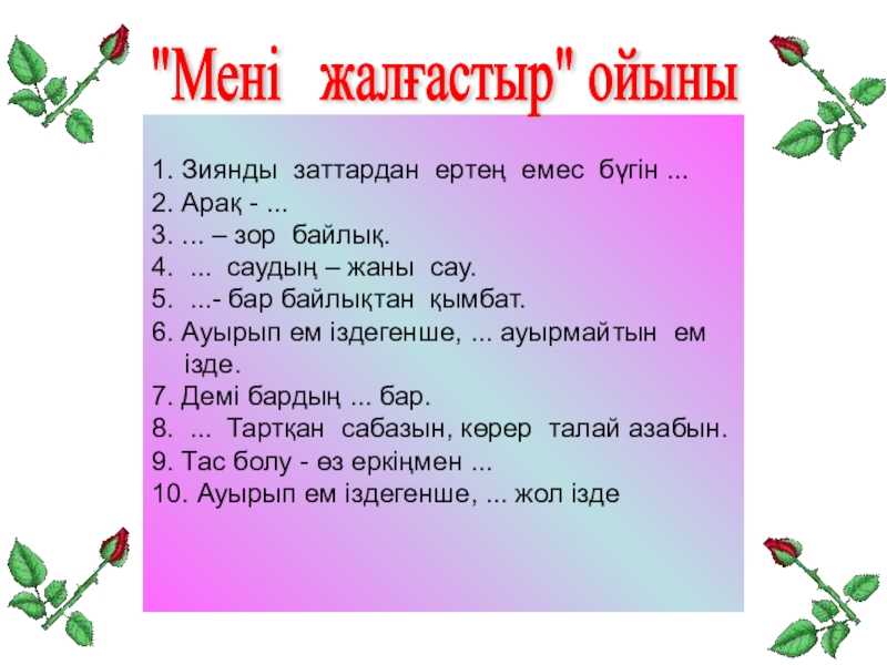2. Ол 15 жаста. Темекі тартып, арақ ішіп, аз-аздан үйреніп