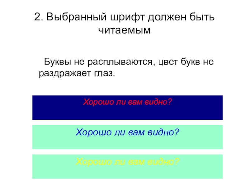 Буквы не расплываются, цвет букв не раздражает глаз.