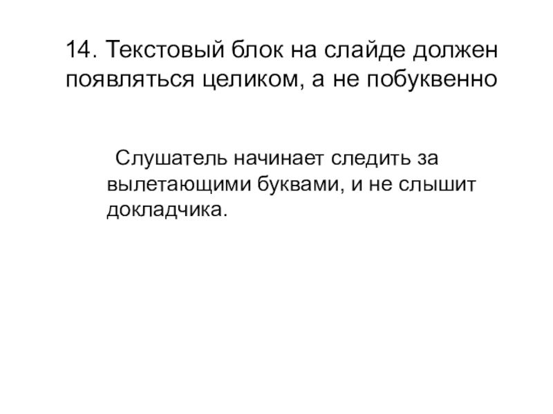 Слушатель начинает следить за вылетающими буквами, и не слышит докладчика.