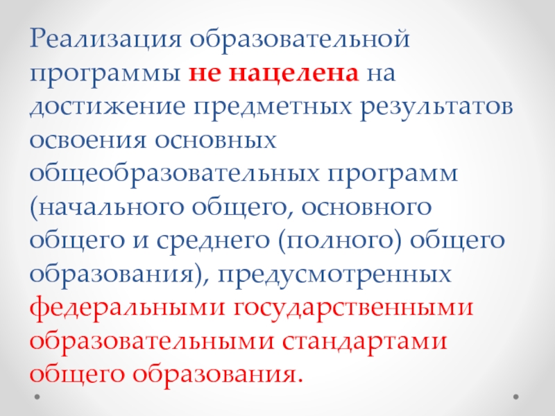 Слайд 23Реализация образовательной программы не нацелена на достижение предметных результатов освоения основных