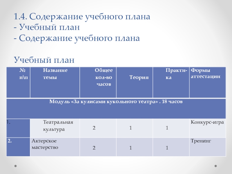 Слайд 121.4. Содержание учебного плана