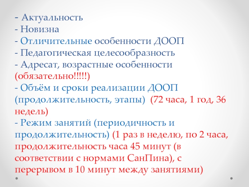 - Объём и сроки реализации ДООП (продолжительность, этапы) (72 часа, 1 год, 36 недель)