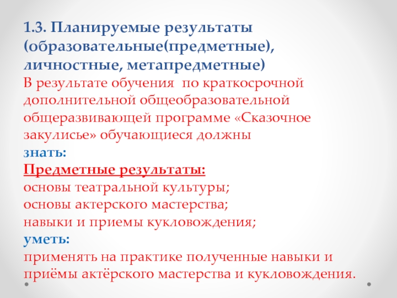 Слайд 111.3. Планируемые результаты (образовательные(предметные), личностные, метапредметные)