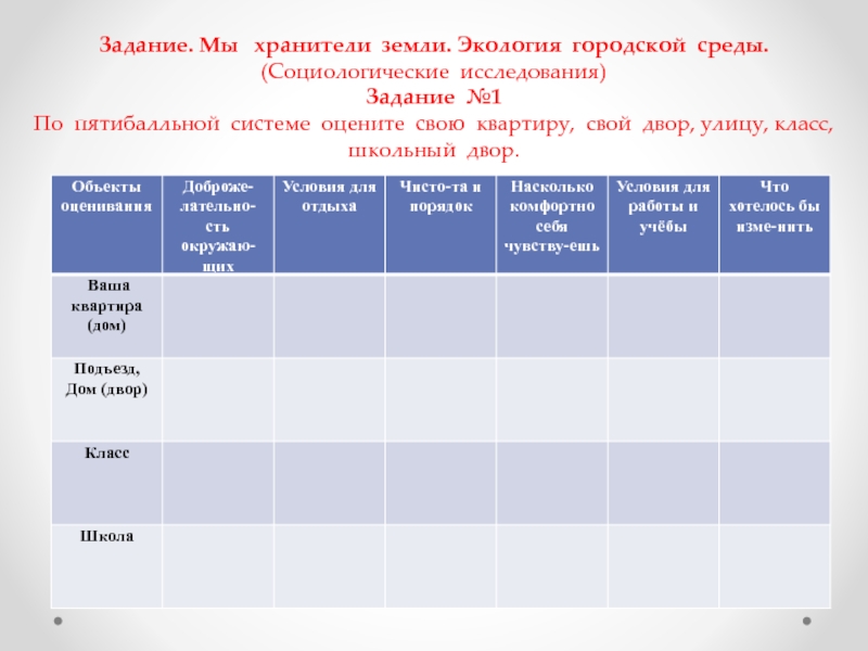 Слайд 20Задание. Мы хранители земли. Экология городской среды.