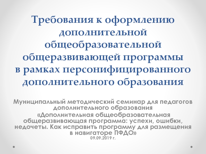 Слайд 1Требования к оформлению дополнительной общеобразовательной общеразвивающей программы