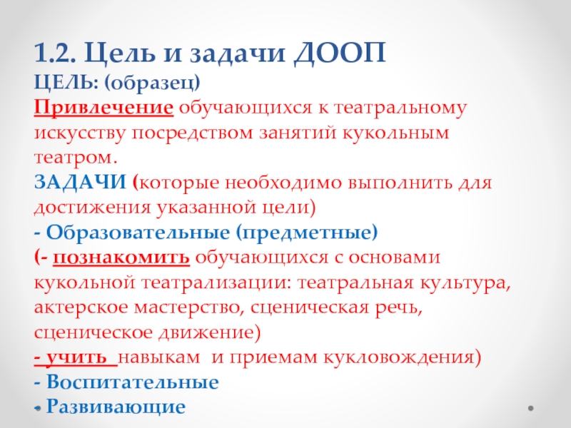Слайд 101.2. Цель и задачи ДООП
