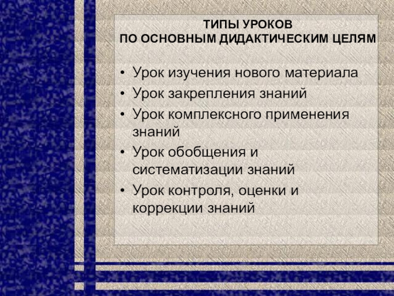 ПО ОСНОВНЫМ ДИДАКТИЧЕСКИМ ЦЕЛЯМ