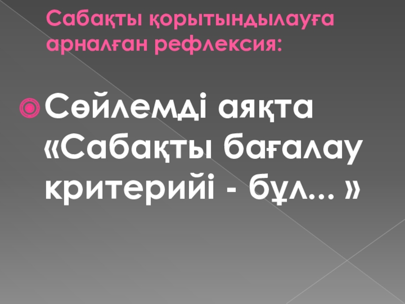 Сабақты қорытындылауға арналған рефлексия:  Сөйлемді аяқта «Сабақты бағалау критерийі - бұл... »