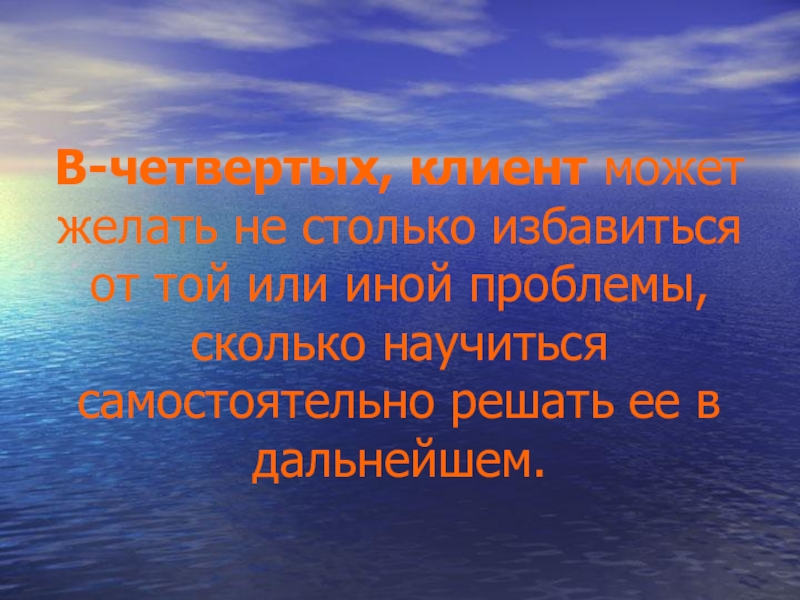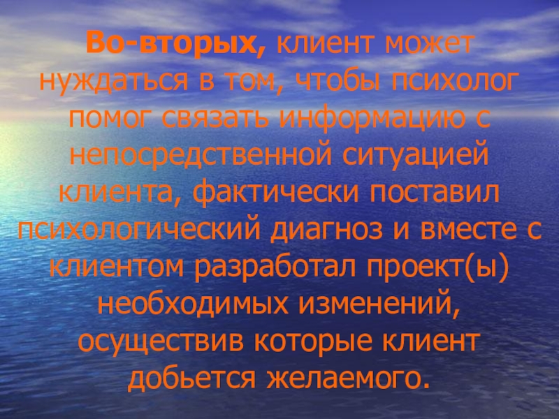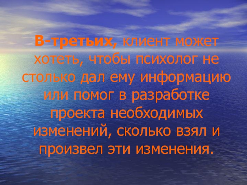 Слайд 13В-третьих, клиент может хотеть, чтобы психолог не столько дал ему информацию