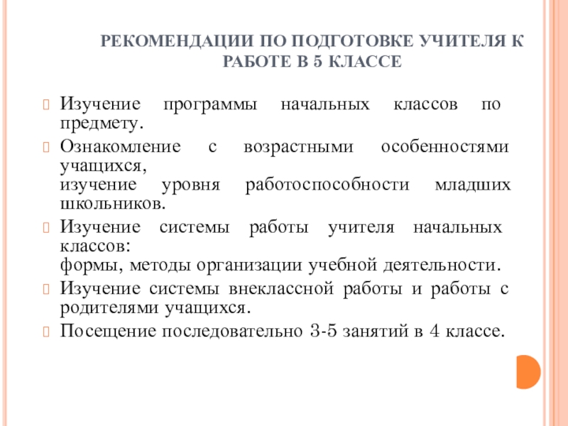 Слайд 16РЕКОМЕНДАЦИИ ПО ПОДГОТОВКЕ УЧИТЕЛЯ К РАБОТЕ В 5 КЛАССЕ