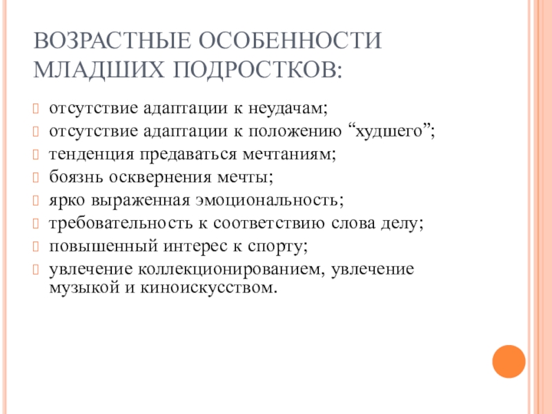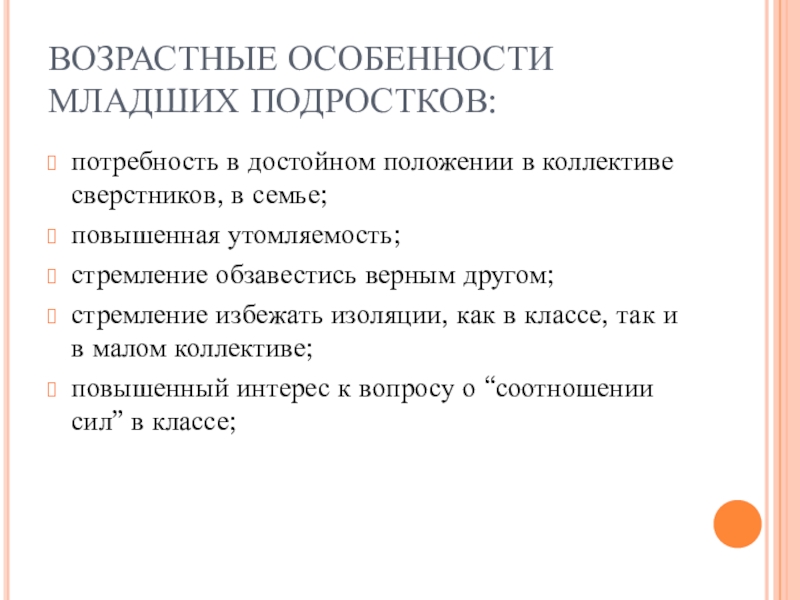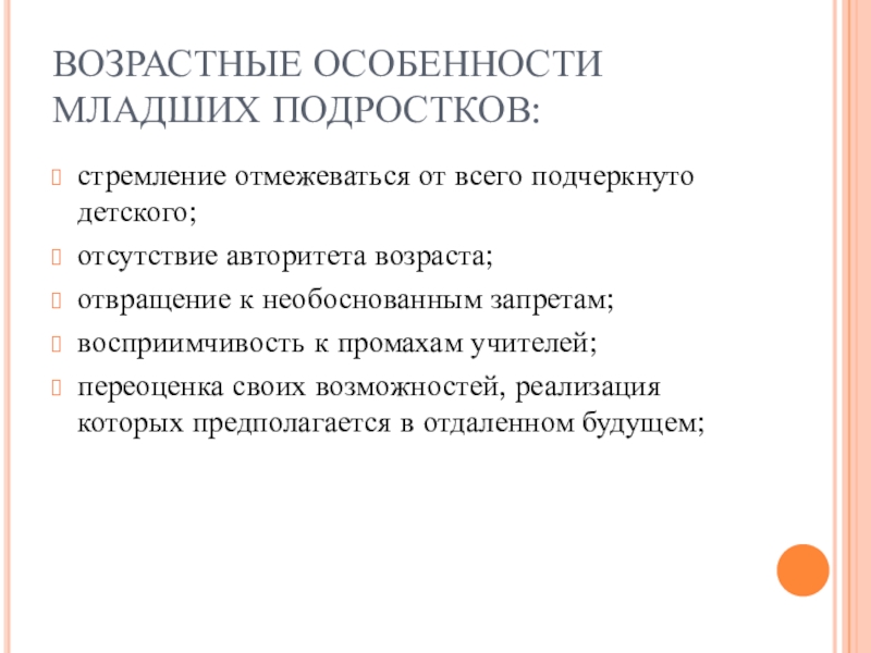 Слайд 11ВОЗРАСТНЫЕ ОСОБЕННОСТИ МЛАДШИХ ПОДРОСТКОВ: