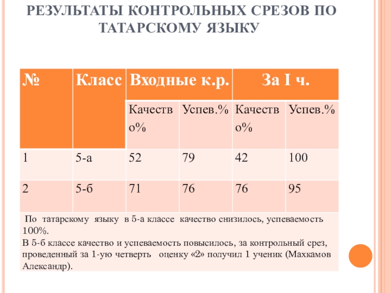 РЕЗУЛЬТАТЫ КОНТРОЛЬНЫХ СРЕЗОВ ПО ТАТАРСКОМУ ЯЗЫКУ