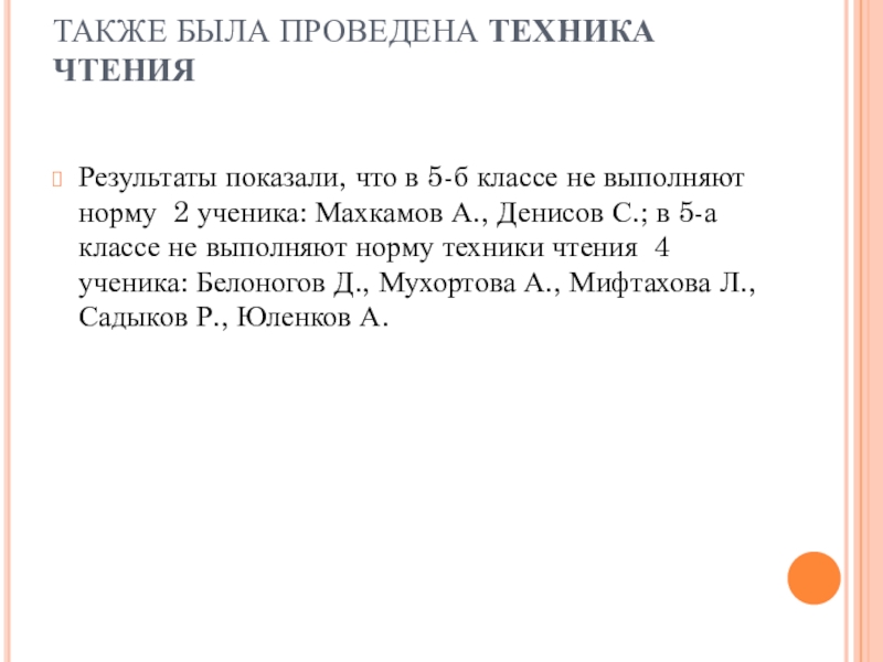 Слайд 32ТАКЖЕ БЫЛА ПРОВЕДЕНА ТЕХНИКА ЧТЕНИЯ