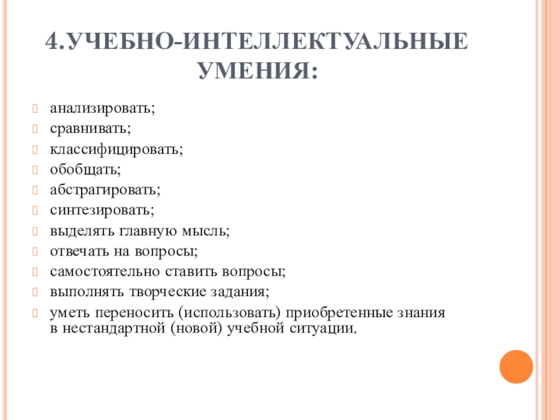Слайд 104.УЧЕБНО-ИНТЕЛЛЕКТУАЛЬНЫЕ УМЕНИЯ:
