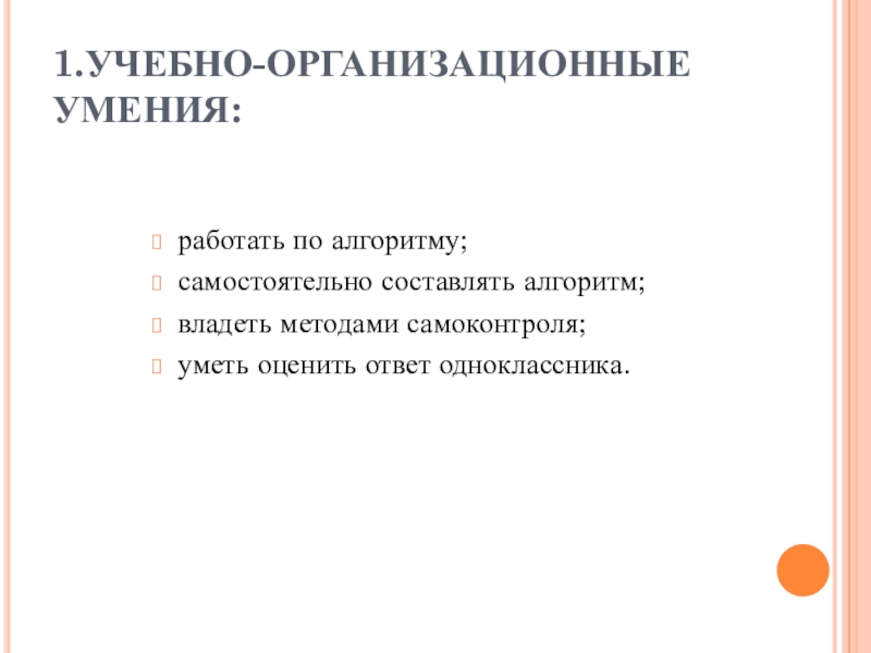 Слайд 71.УЧЕБНО-ОРГАНИЗАЦИОННЫЕ УМЕНИЯ: