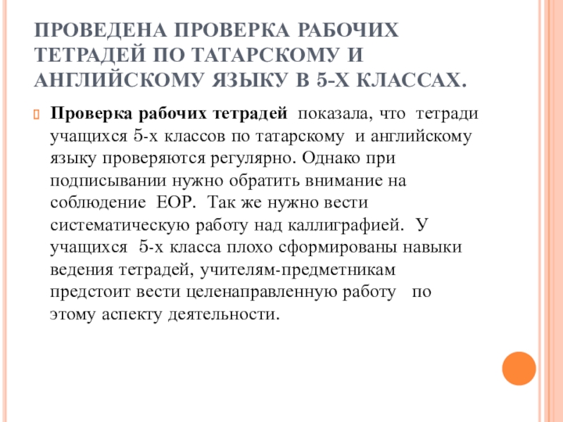 ПРОВЕДЕНА ПРОВЕРКА РАБОЧИХ ТЕТРАДЕЙ ПО ТАТАРСКОМУ И АНГЛИЙСКОМУ ЯЗЫКУ В 5-Х