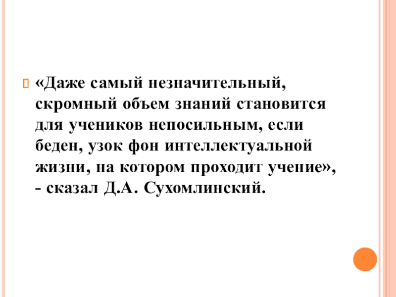 Слайд 26«Даже самый незначительный, скромный объем знаний становится для учеников непосильным, если