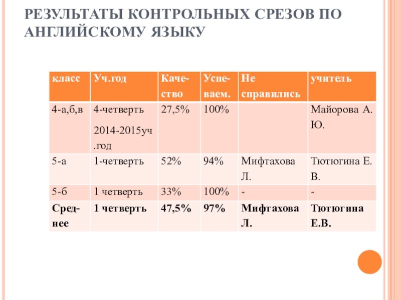 РЕЗУЛЬТАТЫ КОНТРОЛЬНЫХ СРЕЗОВ ПО АНГЛИЙСКОМУ ЯЗЫКУ