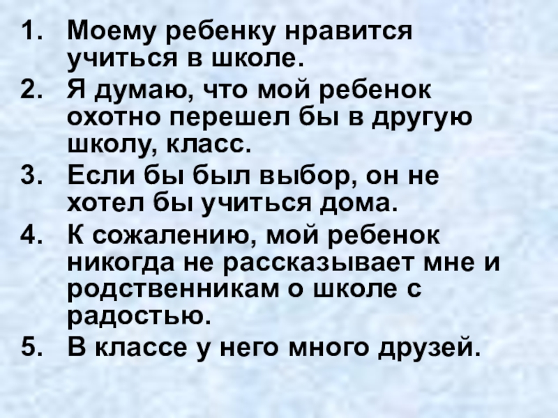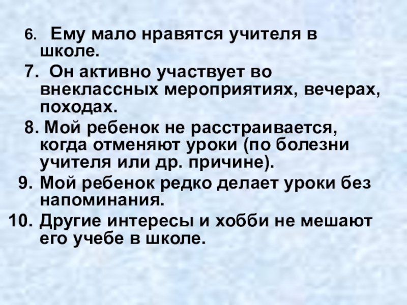 Слайд 188-10 баллов - У вашего ребенка хорошее отношение к школе и