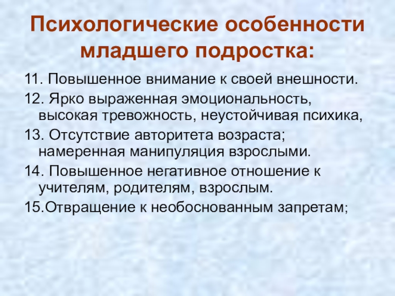 14. Повышенное негативное отношение к учителям, родителям, взрослым.