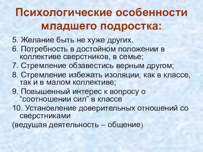 8. Стремление избежать изоляции, как в классе, так и в малом коллективе;