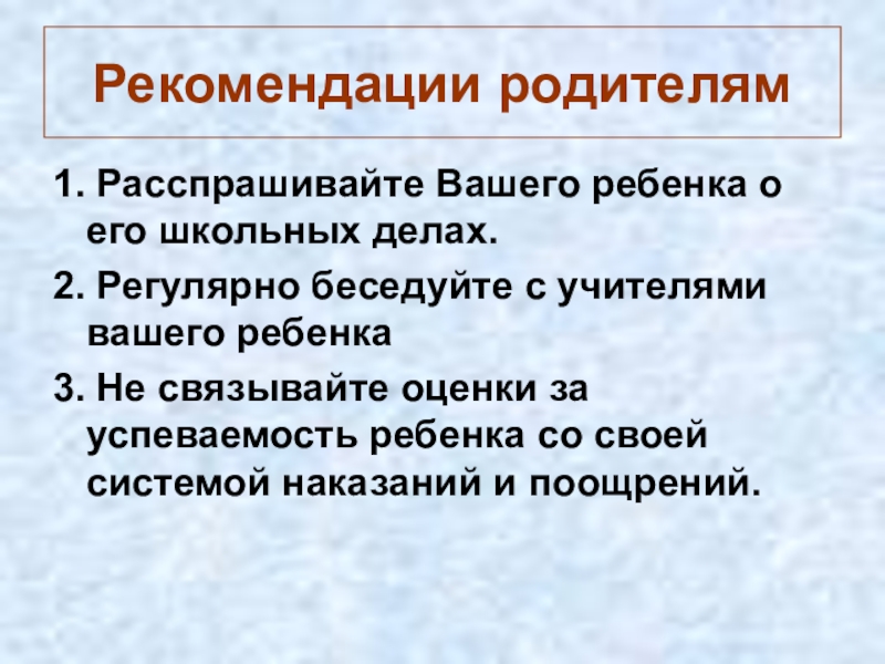 1. Расспрашивайте Вашего ребенка о его школьных делах.