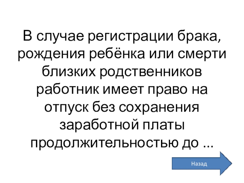 Слайд 18В случае регистрации брака, рождения ребёнка или смерти близких родственников работник