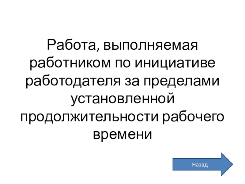 Слайд 12Работа, выполняемая работником по инициативе работодателя за пределами установленной продолжительности рабочего