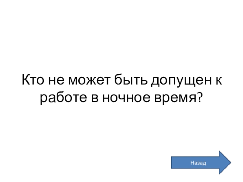 Слайд 10Кто не может быть допущен к работе в ночное время?