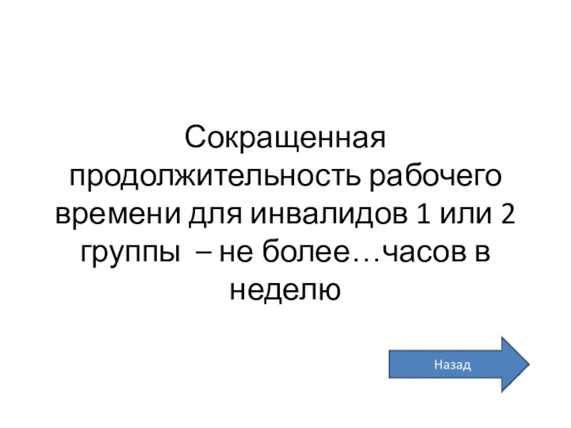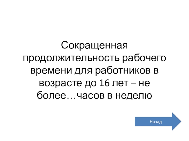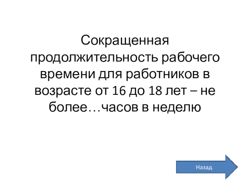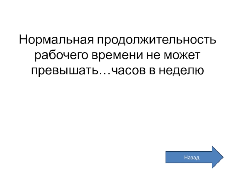 Слайд 8 Нормальная продолжительность рабочего времени не может превышать…часов в неделю