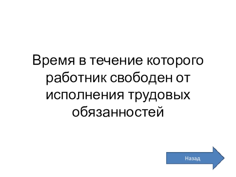 Слайд 14Время в течение которого работник свободен от исполнения трудовых обязанностей