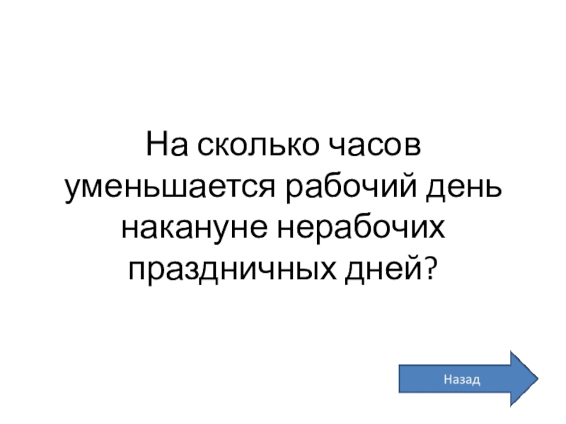 Слайд 9На сколько часов уменьшается рабочий день накануне нерабочих праздничных дней?