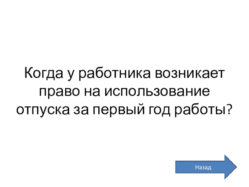 Слайд 16Когда у работника возникает право на использование отпуска за первый год