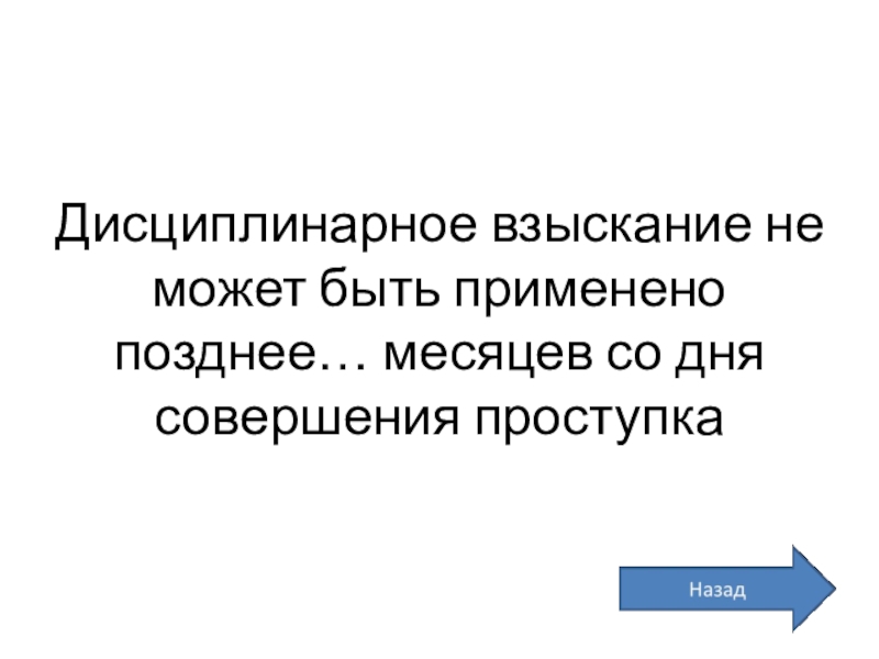 Слайд 24Дисциплинарное взыскание не может быть применено позднее… месяцев со дня совершения