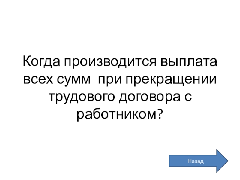 Слайд 21Когда производится выплата всех сумм при прекращении трудового договора с работником?