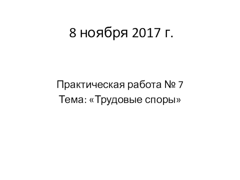 8 ноября 2017 г.Практическая работа № 7Тема: «Трудовые споры»