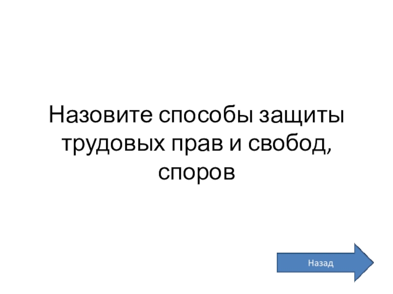 Слайд 26Назовите способы защиты трудовых прав и свобод, споров