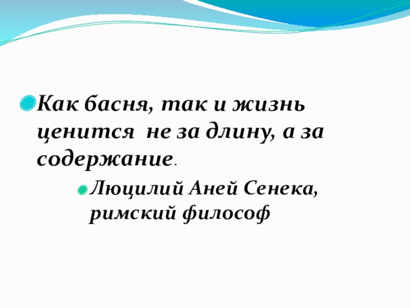 Как басня, так и жизнь ценится не за длину, а за