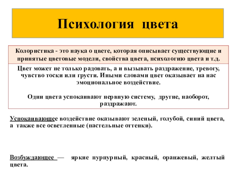 Цвет может не только радовать, а и вызывать раздражение, тревогу, чувство тоски или грусти. Иными словами цвет оказывает на нас эмоциональное воздействие.