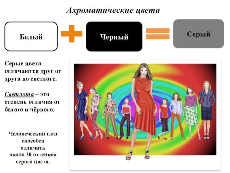 Ахроматические цвета– белый, серый, чёрный характеризуются только светлотой и являются нейтральными.