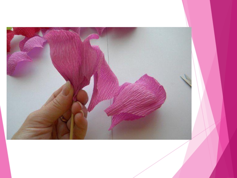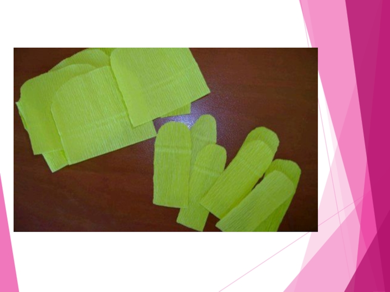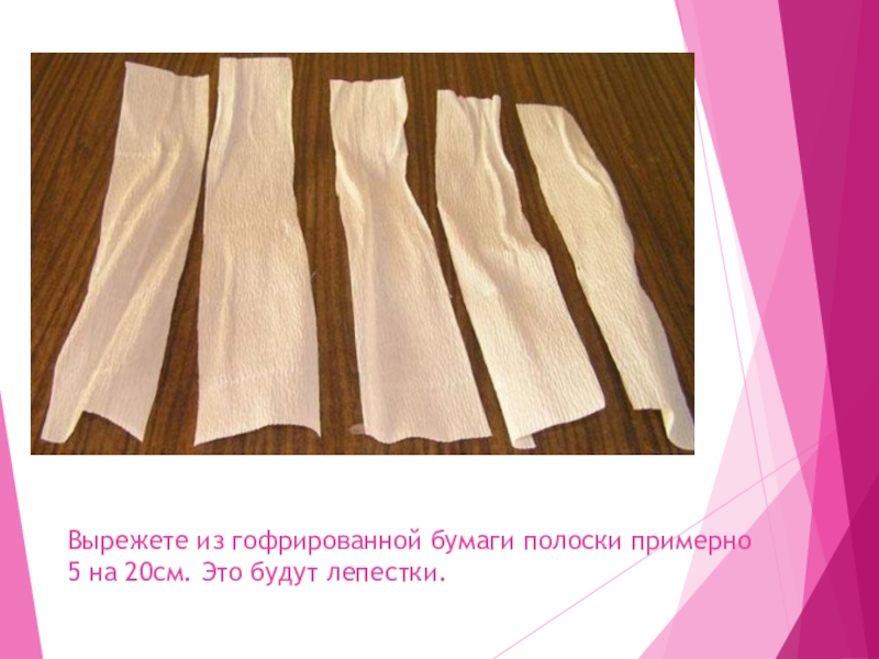 Слайд 25Вырежете из гофрированной бумаги полоски примерно 5 на 20см. Это будут