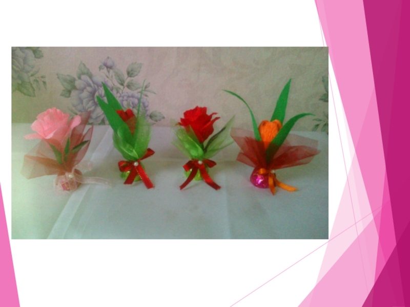 Презентация на тему: « Цветы из гофрированной бумаги и конфет»