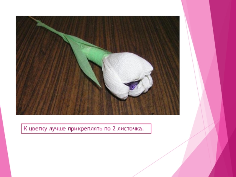 Слайд 32К цветку лучше прикреплять по 2 листочка.