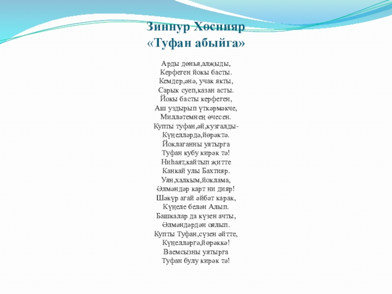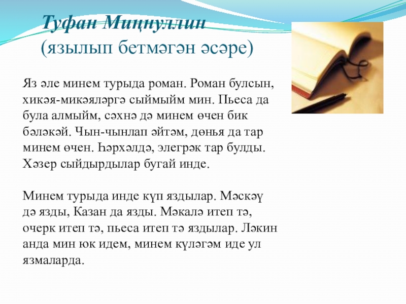 Слайд 20ТУФАН МИҢНУЛЛИННЫҢ ФИКЕРЕ: