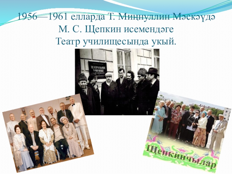 Слайд 31956—1961 елларда Т. Миңнуллин Мәскәүдә М. С. Щепкин исемендәге