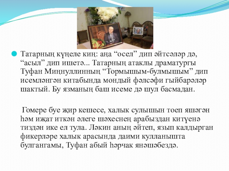 Слайд 1Туфан Миңнуллин - татар халкының сөекле язучысы