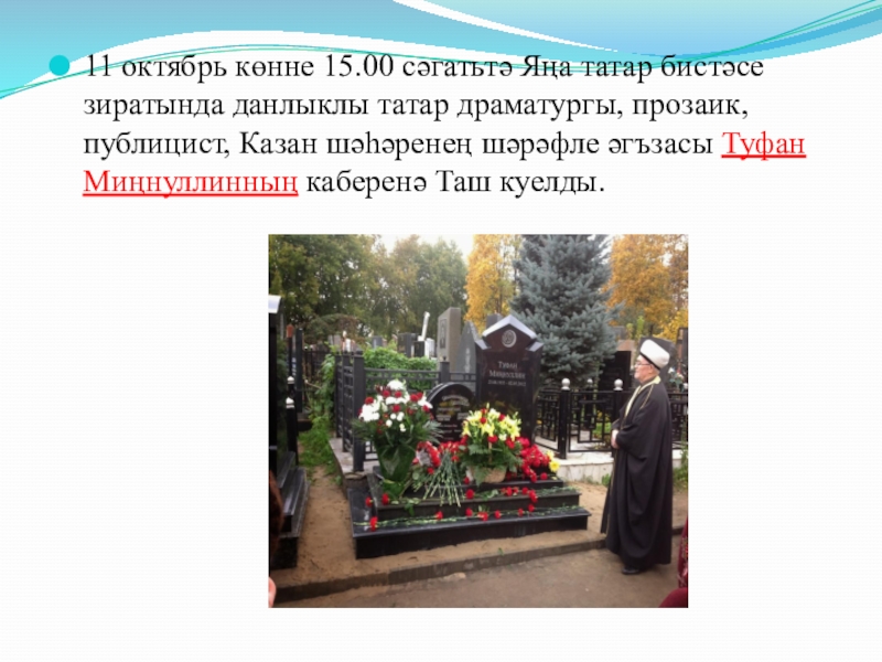 Слайд 2811 октябрь көнне 15.00 сәгатьтә Яңа татар бистәсе зиратында данлыклы татар