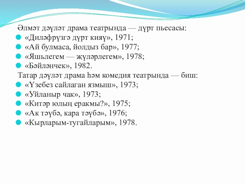 Слайд 11Әлмәт дәүләт драма театрында — дүрт пьесасы: