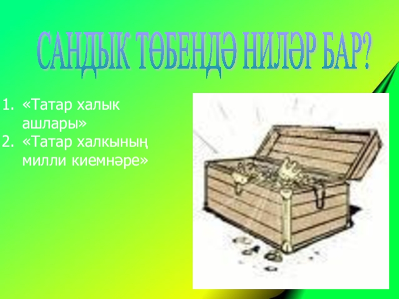 Слайд 5САНДЫК ТӨБЕНДӘ НИЛӘР БАР?